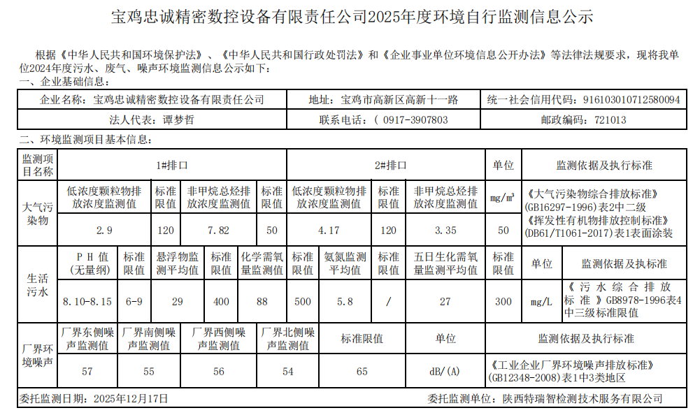 自行检测报告及自行检测公示表